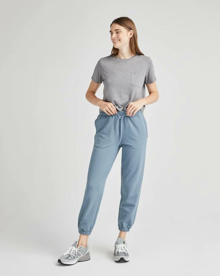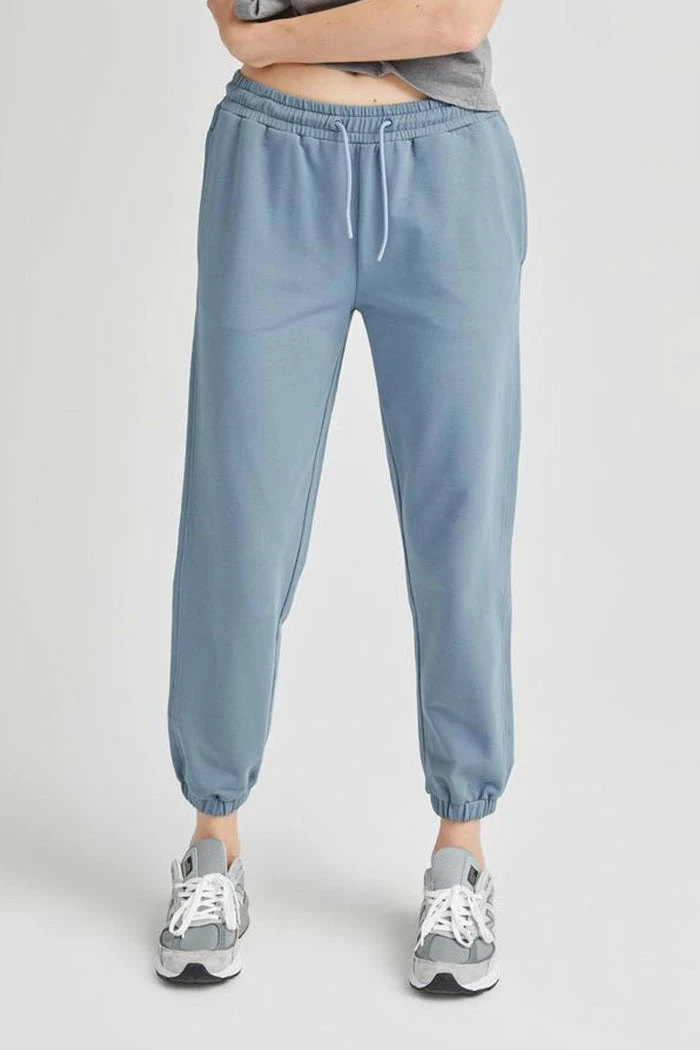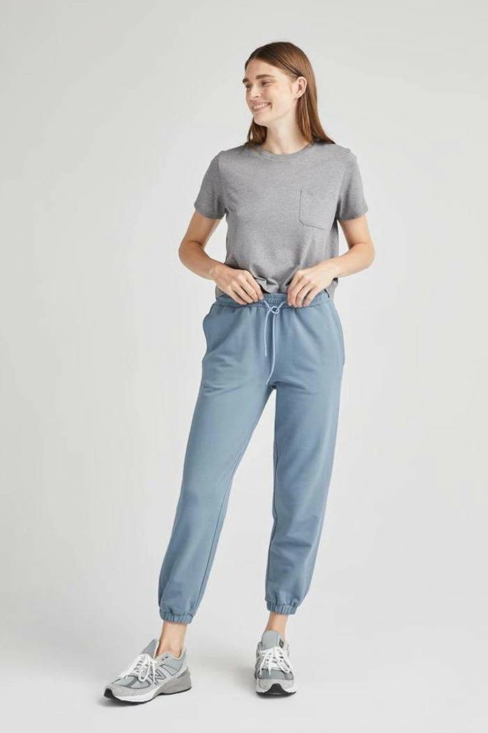 Richer Poorer Terry classic sweatpants in blue mirage. Mini loopback french terry, lightweight, moisture-wicking. Side panels with pocketed lined in soft jersey.Â