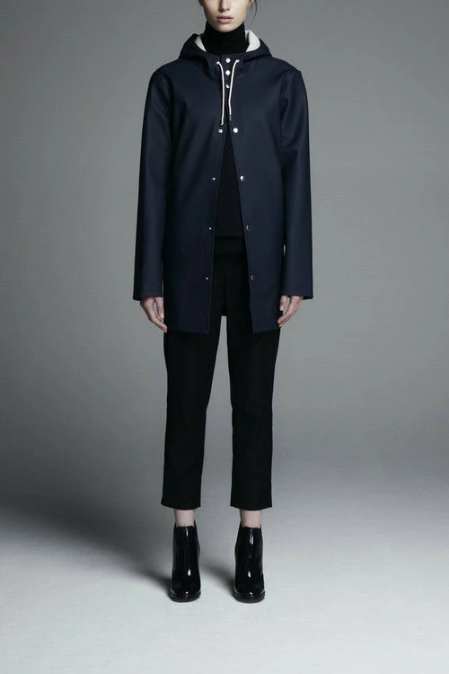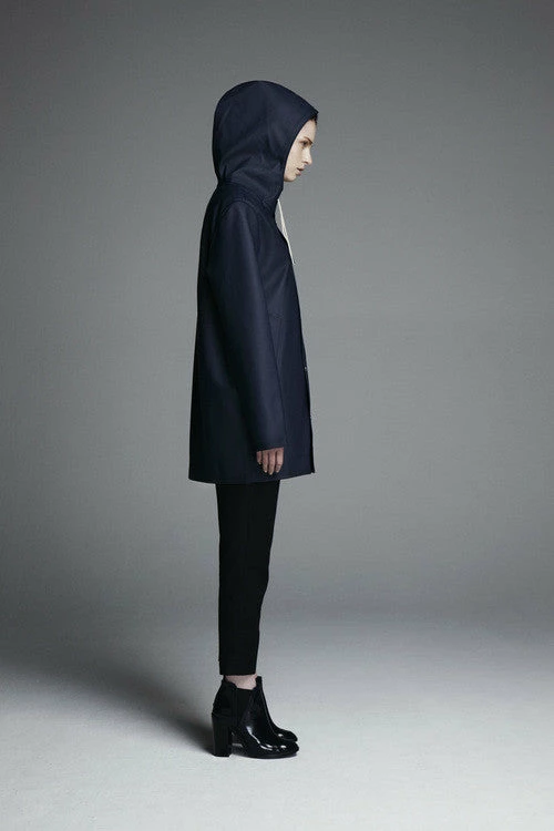 Stutterheim Stockholm rain jacket has snap closure, drawstrings, and exemplifies both versatility and durability in its updated design. Using the finest craftsmanship materials and details, the Stockholm coat has undergone sever testing in horrible conditions both at sea and in the city. Each coat is individually quality-controlled and handmade by a skilled seamstress. See other colors in Stockholm style here, or check out the A-line Mosebacke style here.
