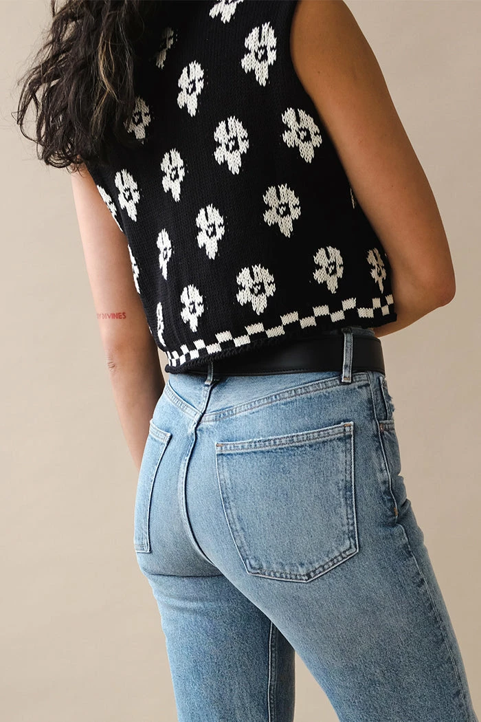 Tach Loreza knit tank top in black and white jaquard floral.