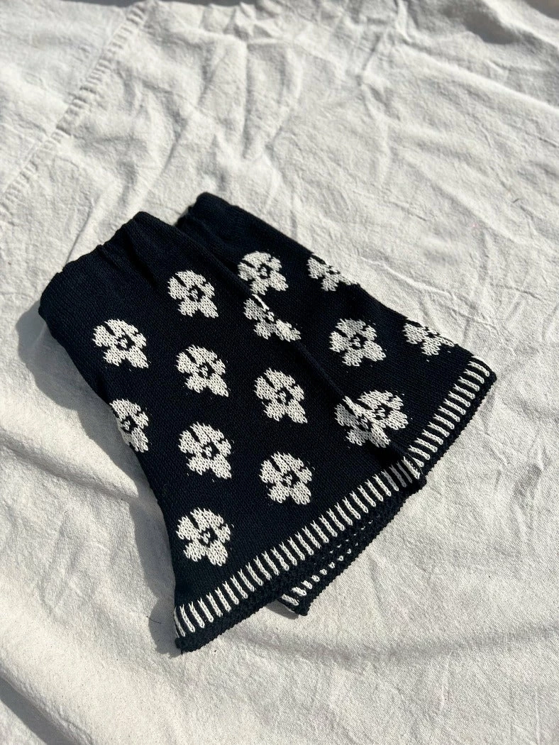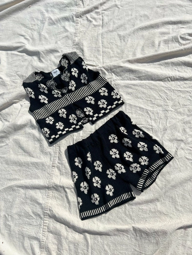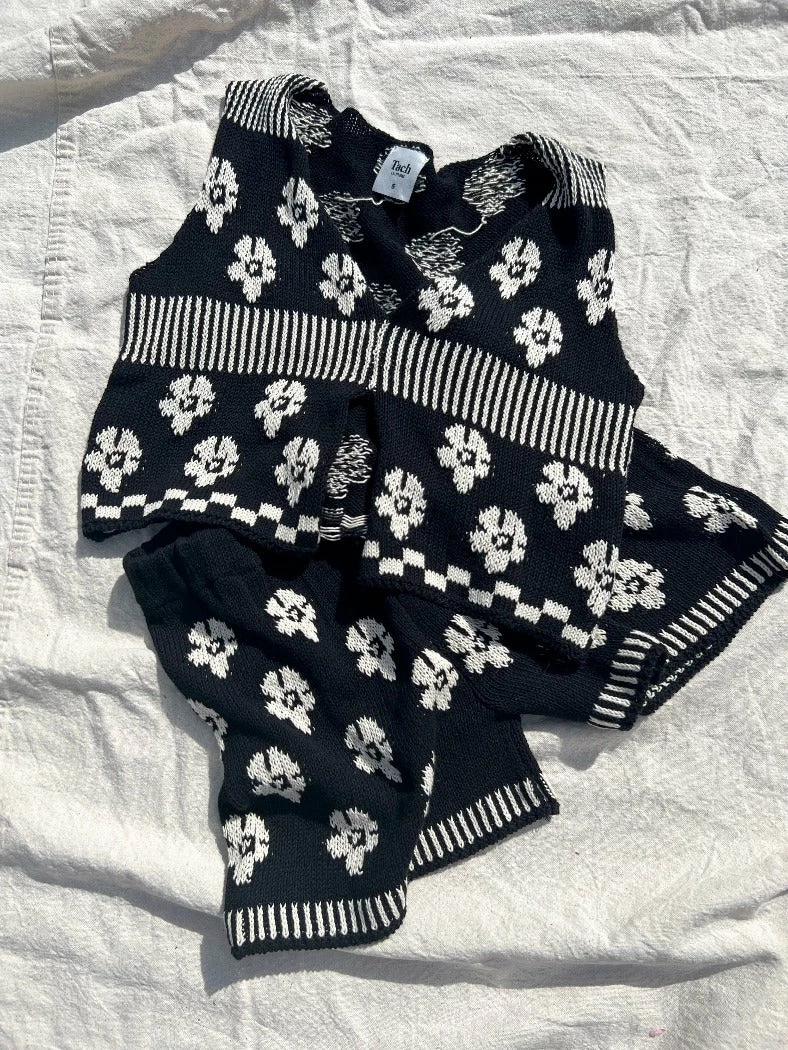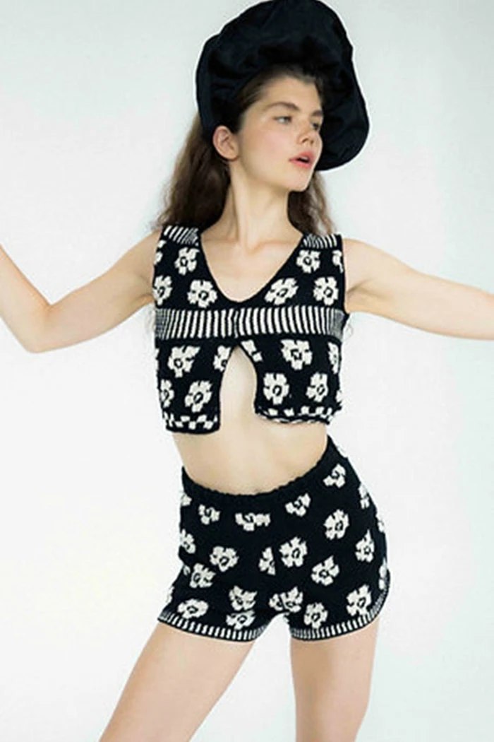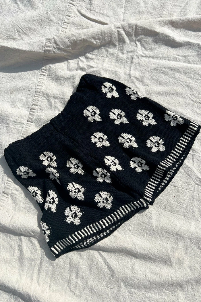 Tach Alessia black and white, high waisted, jaquard floral knit short.