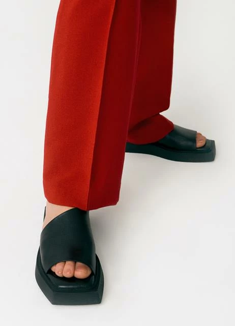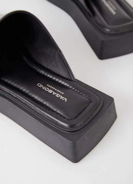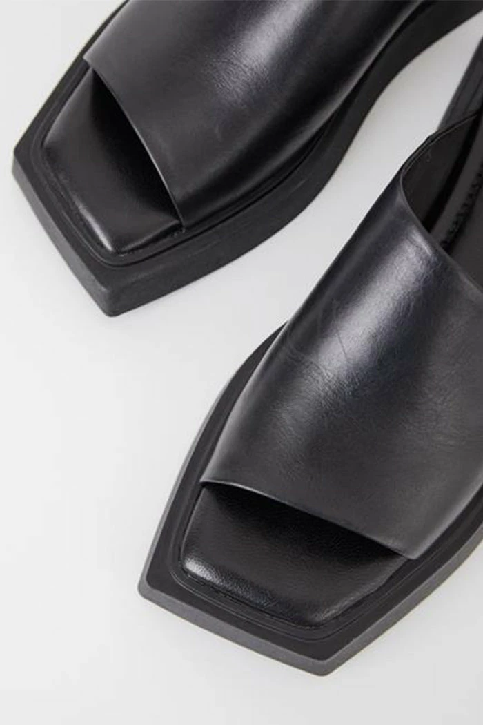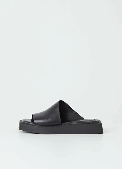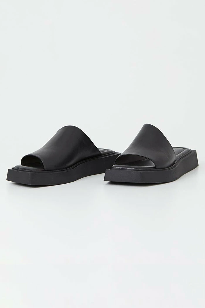 Vagabond asymmetric Evy slides are the edgy slip-in sandals with a minimal design and sharp square toes in black.