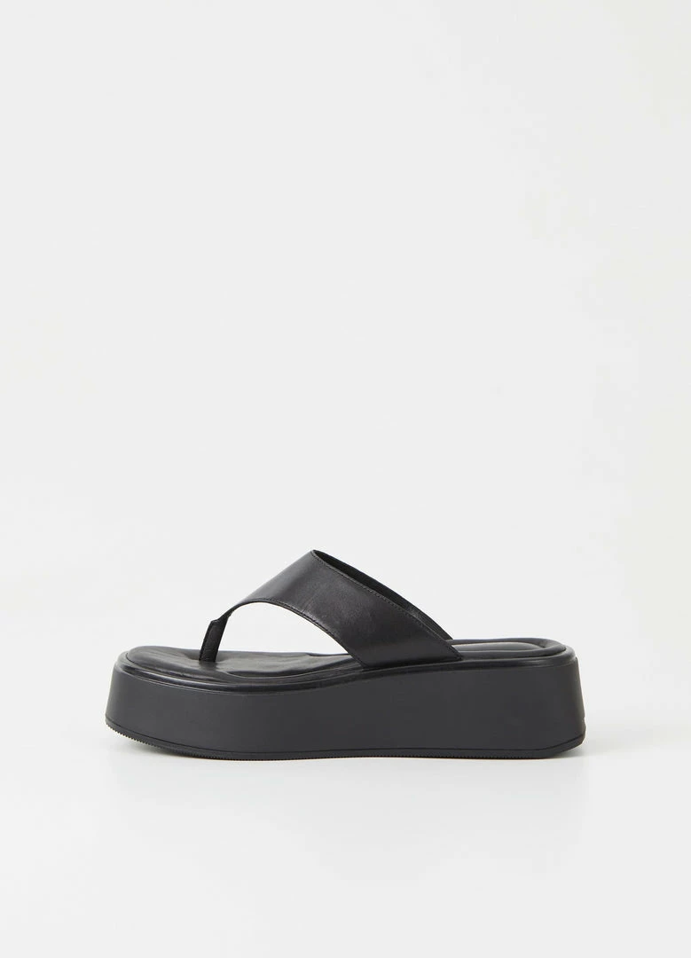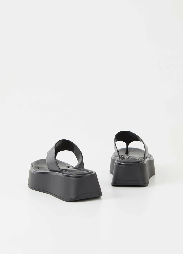 Vagabond Courtney platform flip flops in black leather.