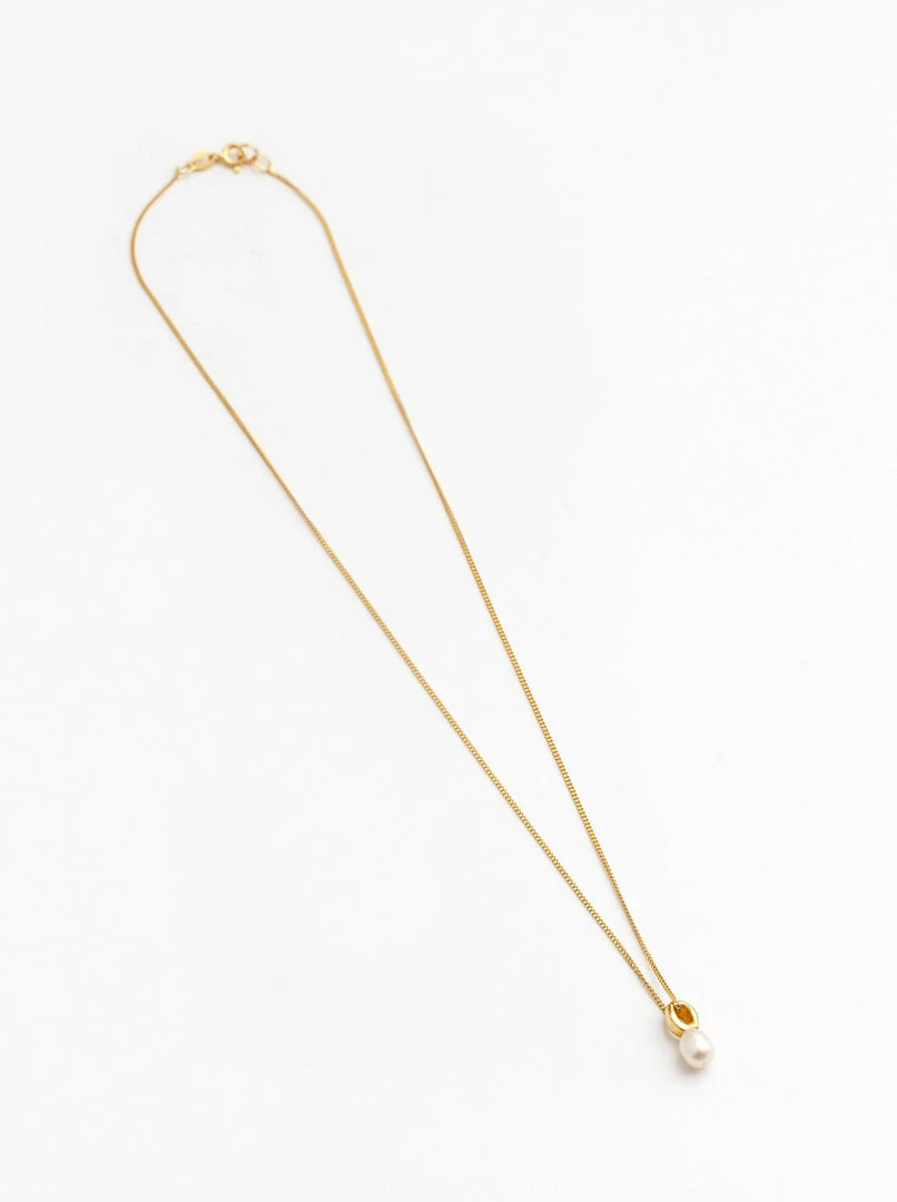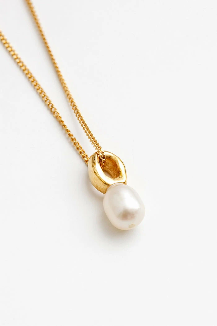 Wolf Circus Betsy necklace pendant with freshwater pearl on curb chain.