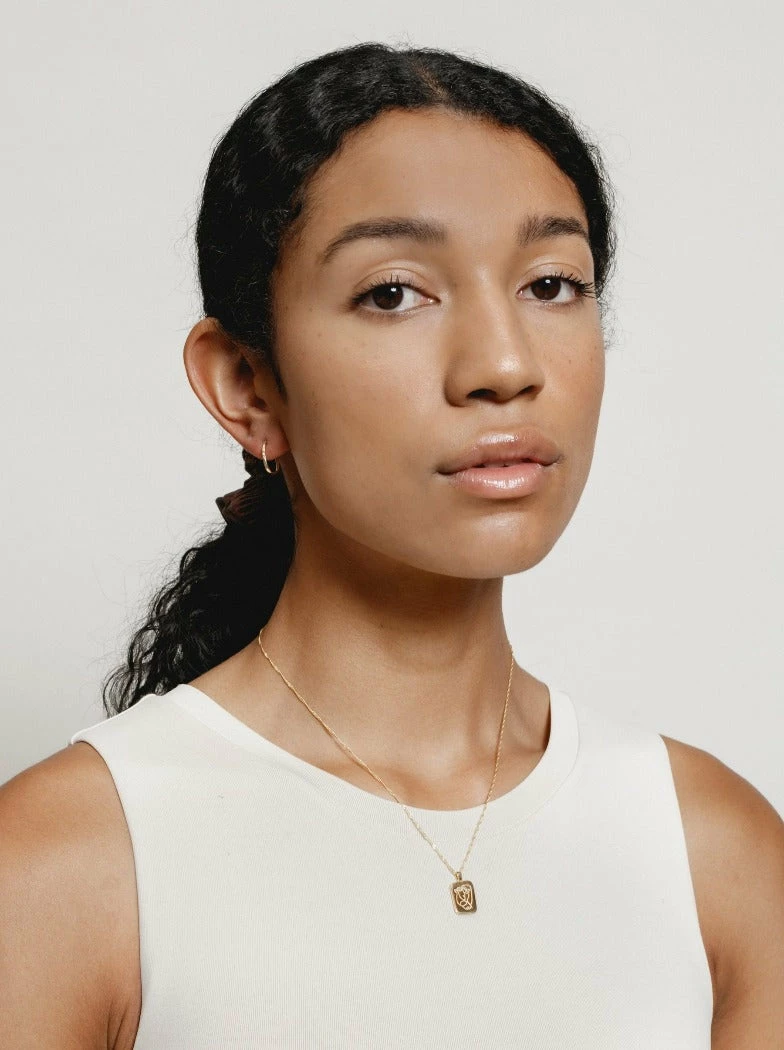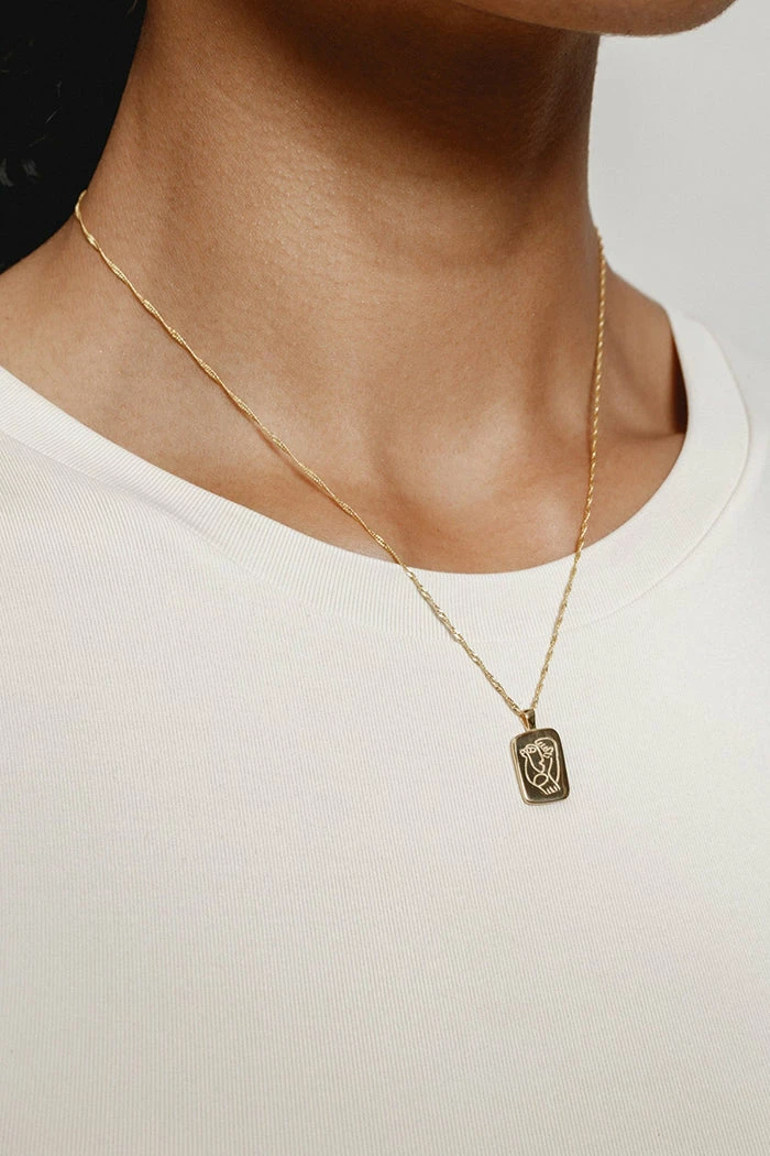 Wolf Circus Bronte face pendant necklace in gold. “Full Expression of Ourselves” why color ourselves dull when we have so much life and love to give. Be your authentic self in full saturation.