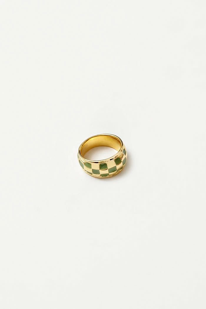14k gold-plated bronze ring with cream resin. 12mm at widest point
