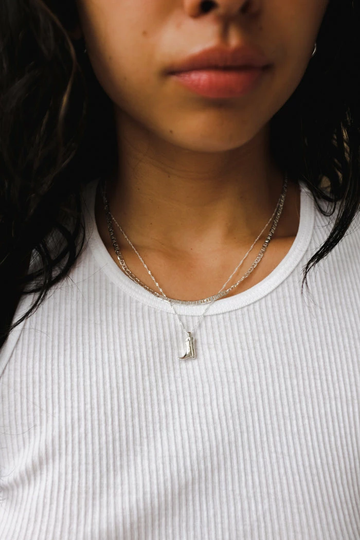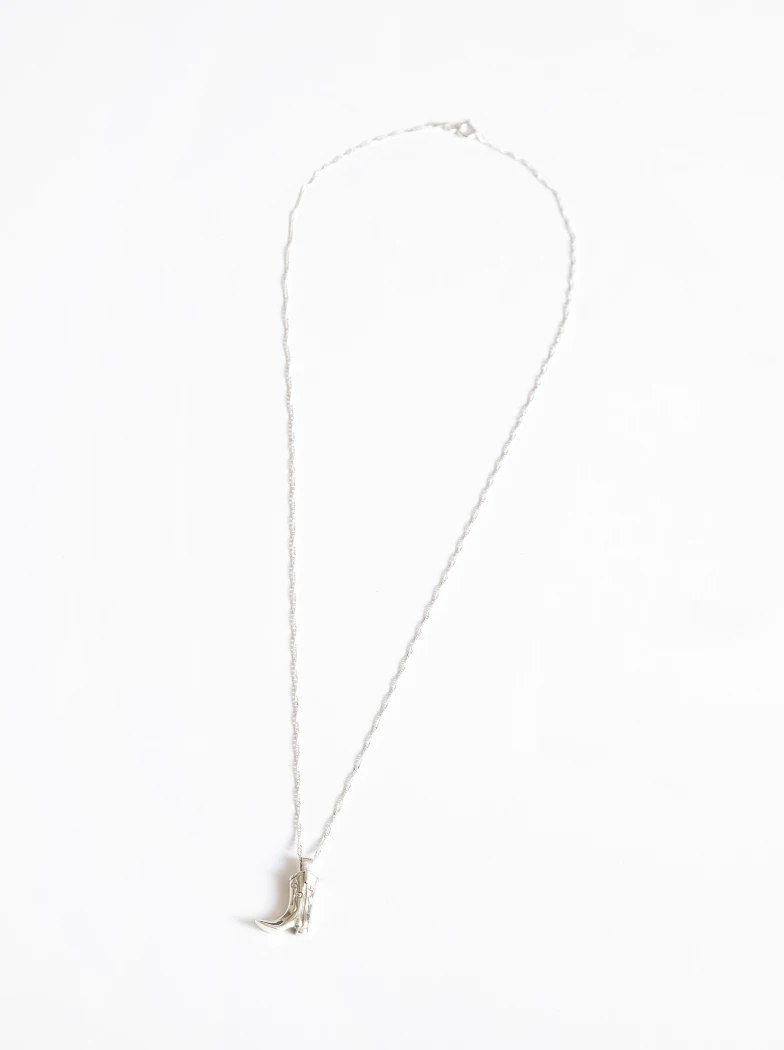 Wolf Circus western cowboy boot pendent in sterling silver.