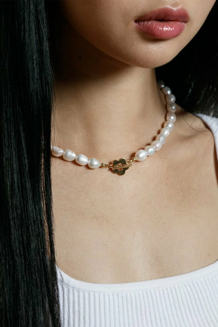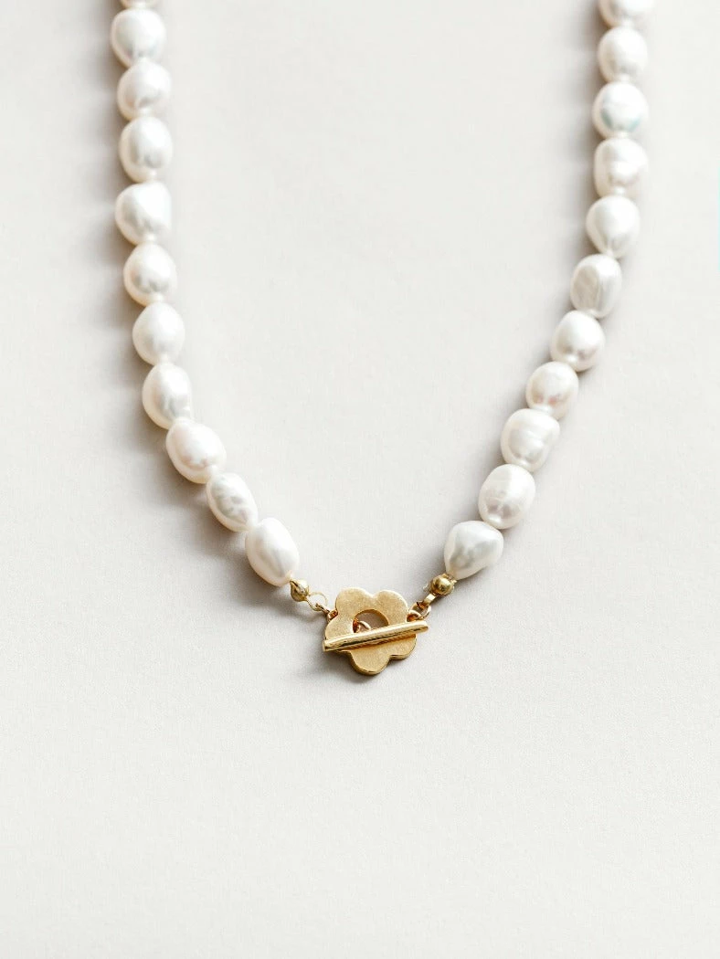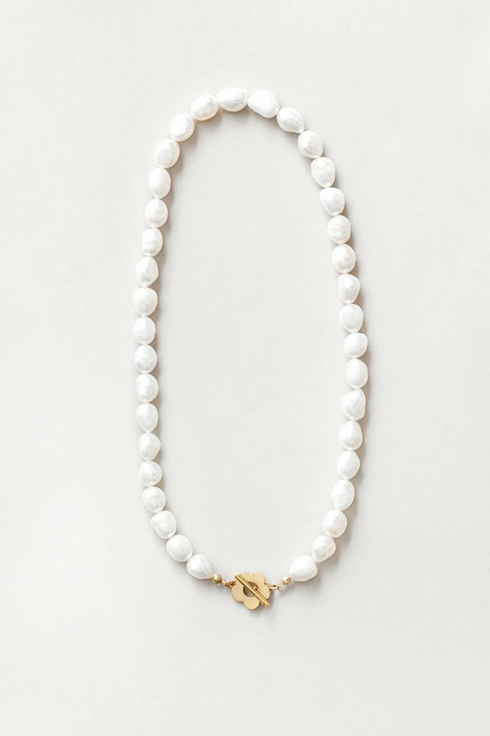 17” Freshwater pearl necklace. 14K plated recycled bronze toggle.