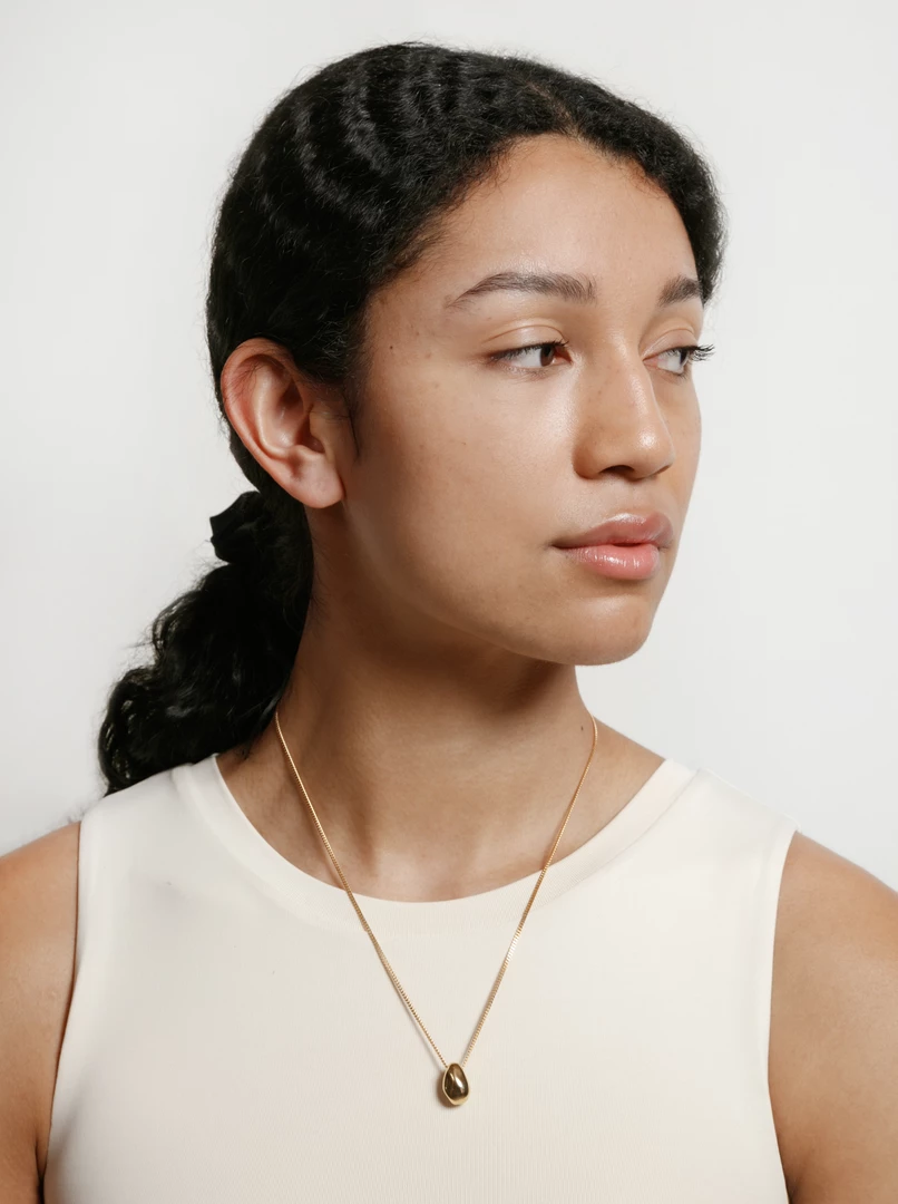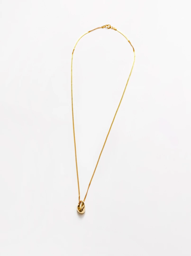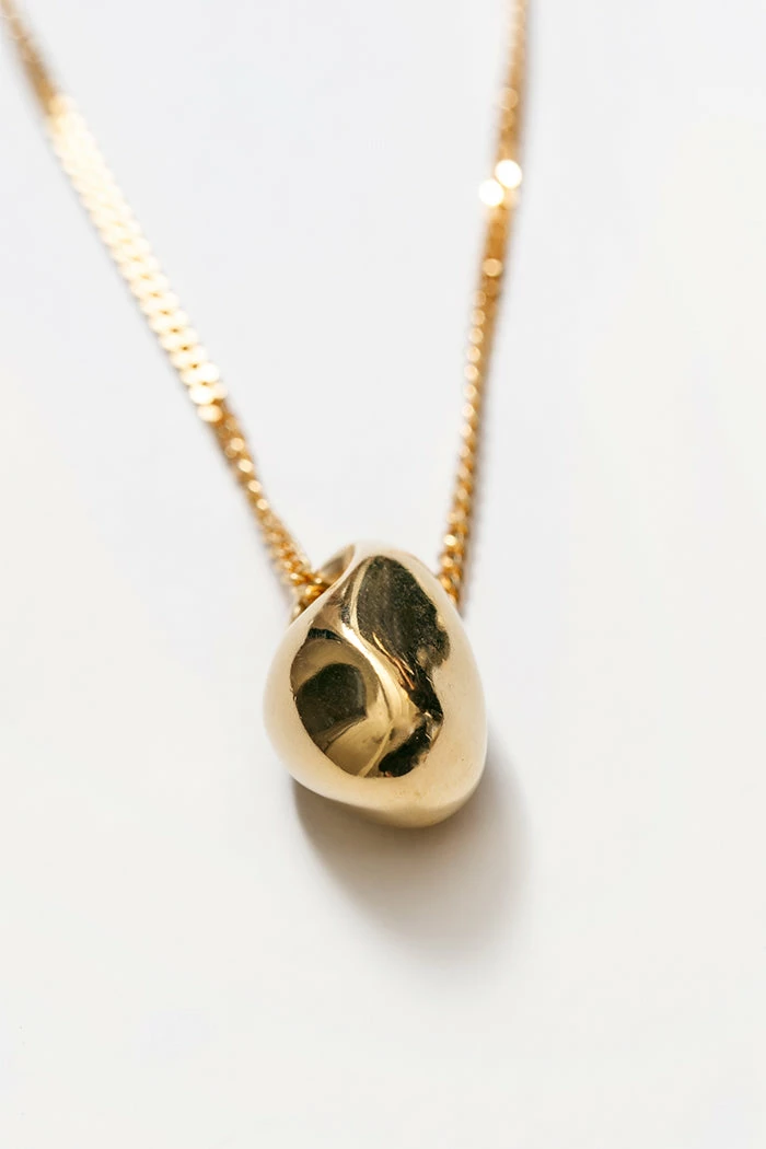 20” 14k gold vermeil with solid 14k gold-plated bronze organic oval pendant.