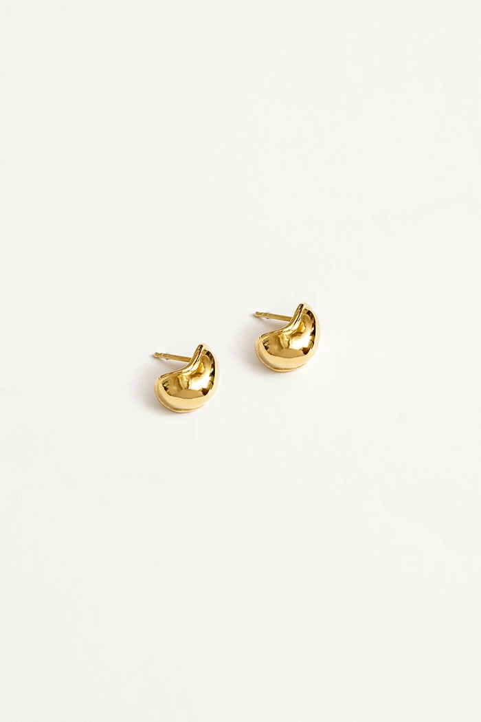 14k gold plated over bronze contoured and bordered studs, 14k gold plated over bronze sterling silver posts. 13mm length, 10mm wide.