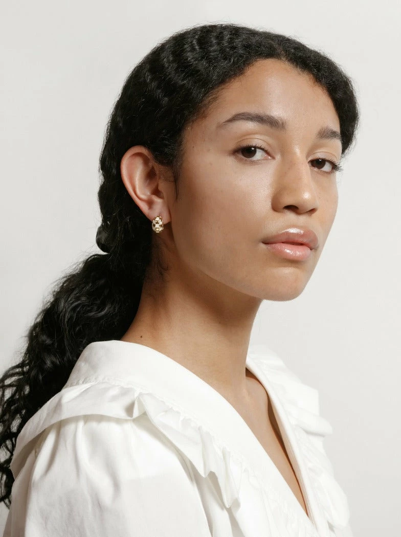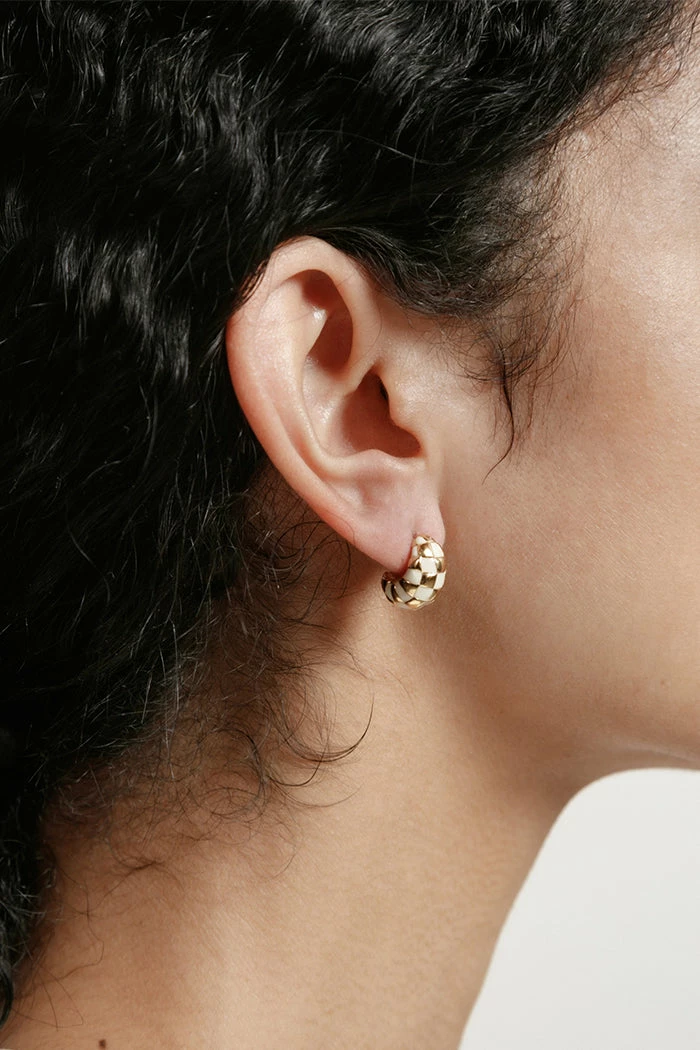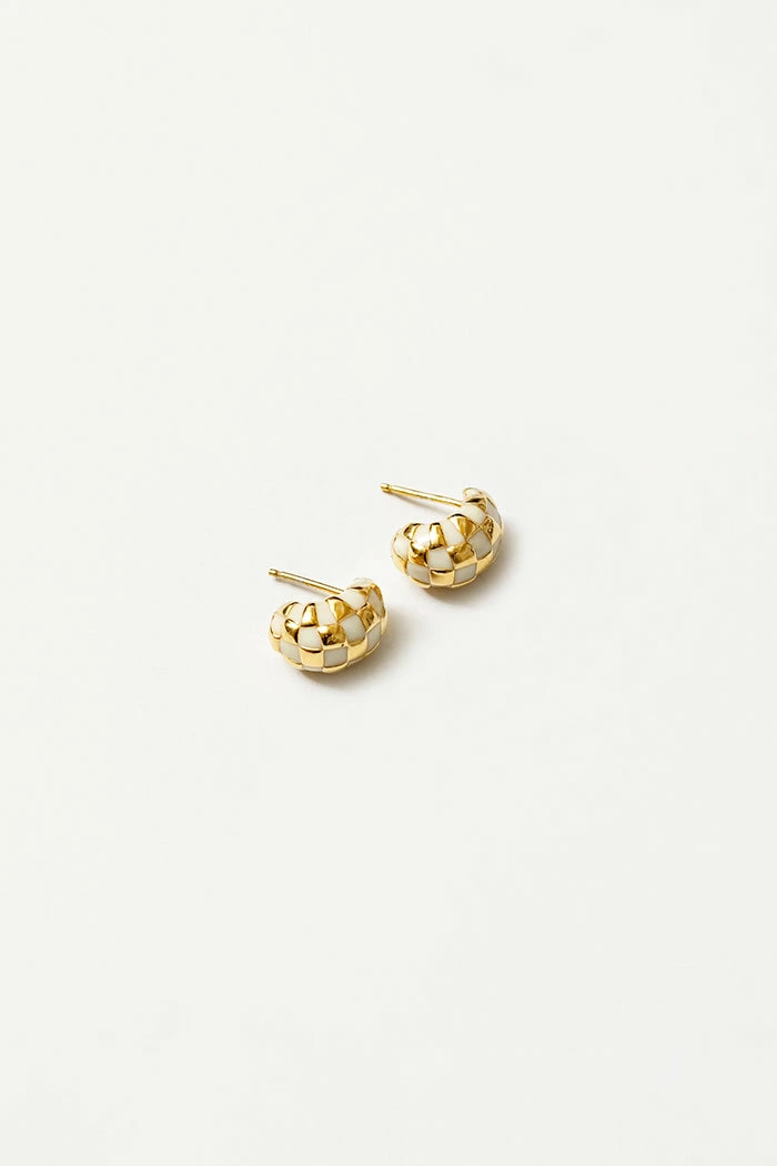 Wolf Circus small Nellie cream and gold checkered earrings.