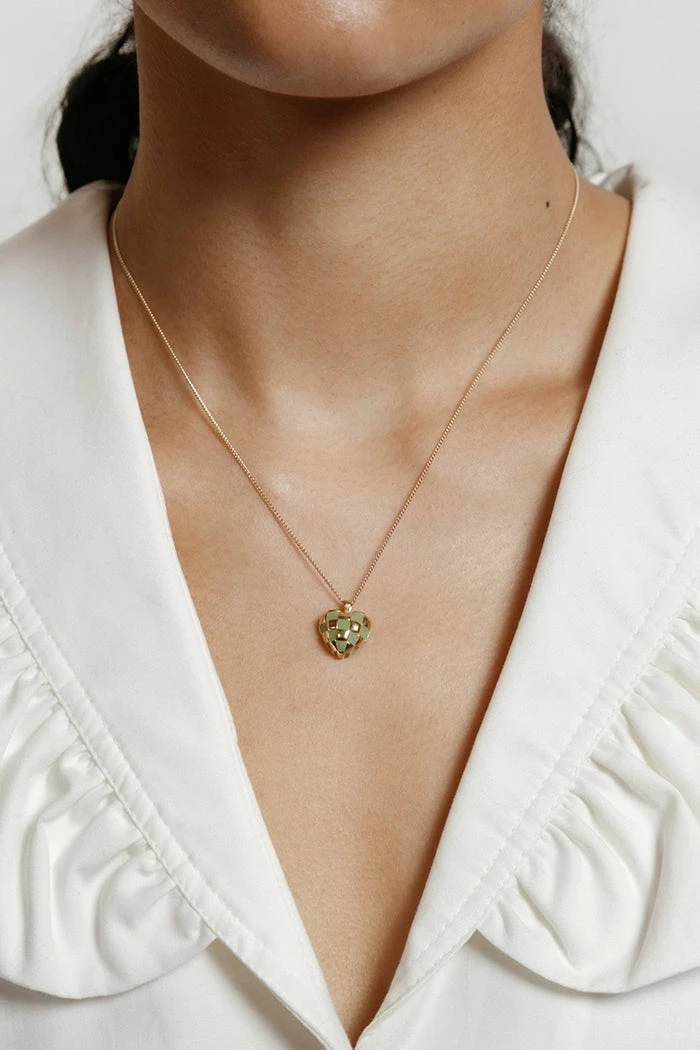 Wolf Circus Georgia checkered necklace in green and gold.Â
