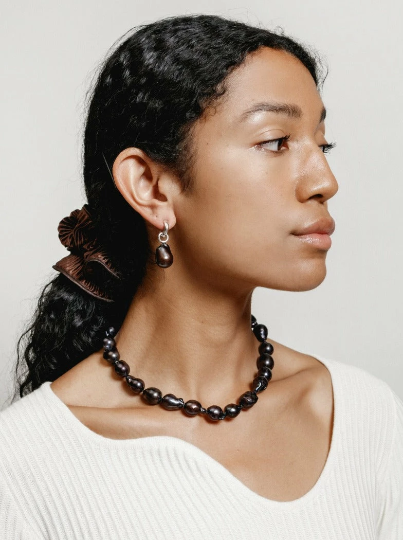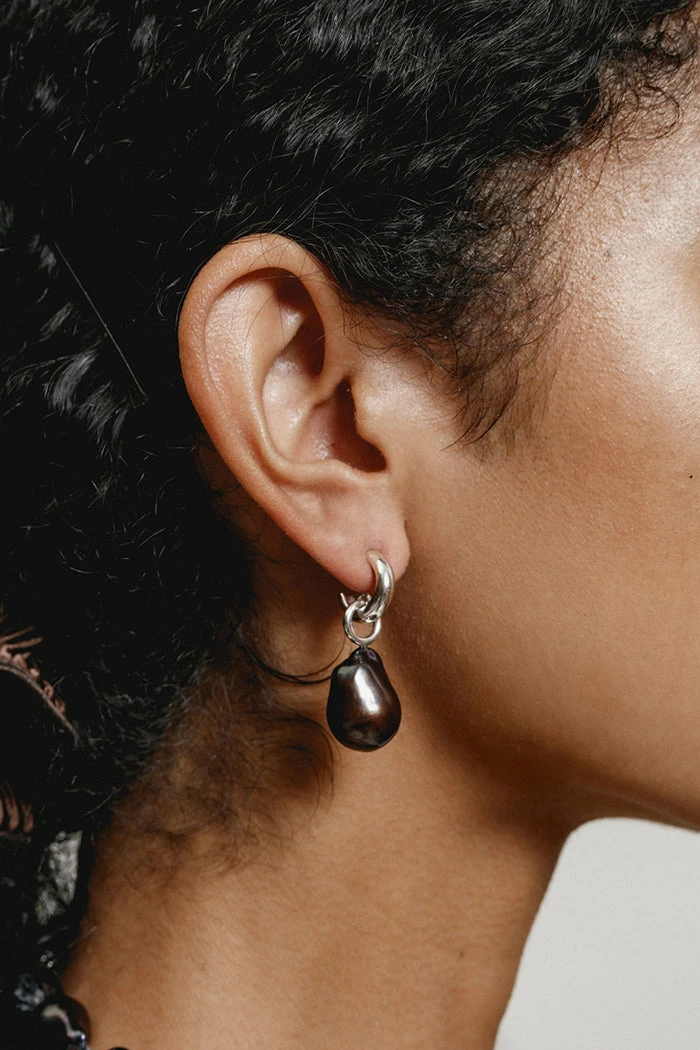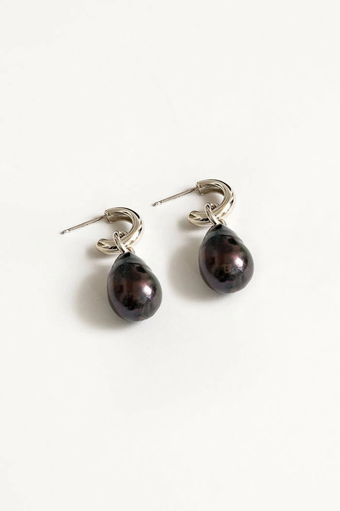 Wolf Circus sterling silver Suki hoops with black freshwater baroque pearls.Â